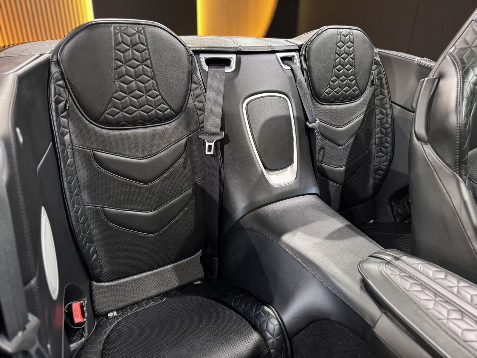 Der Innenraum empfängt mit tiefschwarzem, teils gestepptem Leder, ergänzt durch makellos integrierte Carbon-Elemente, die sportiven Anspruch mit luxuriöser Raffinesse verbinden.