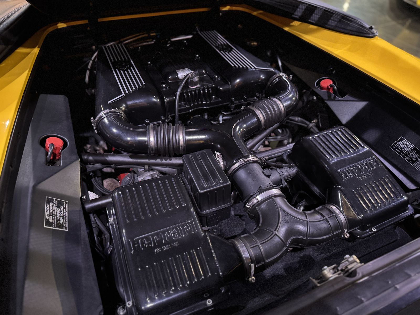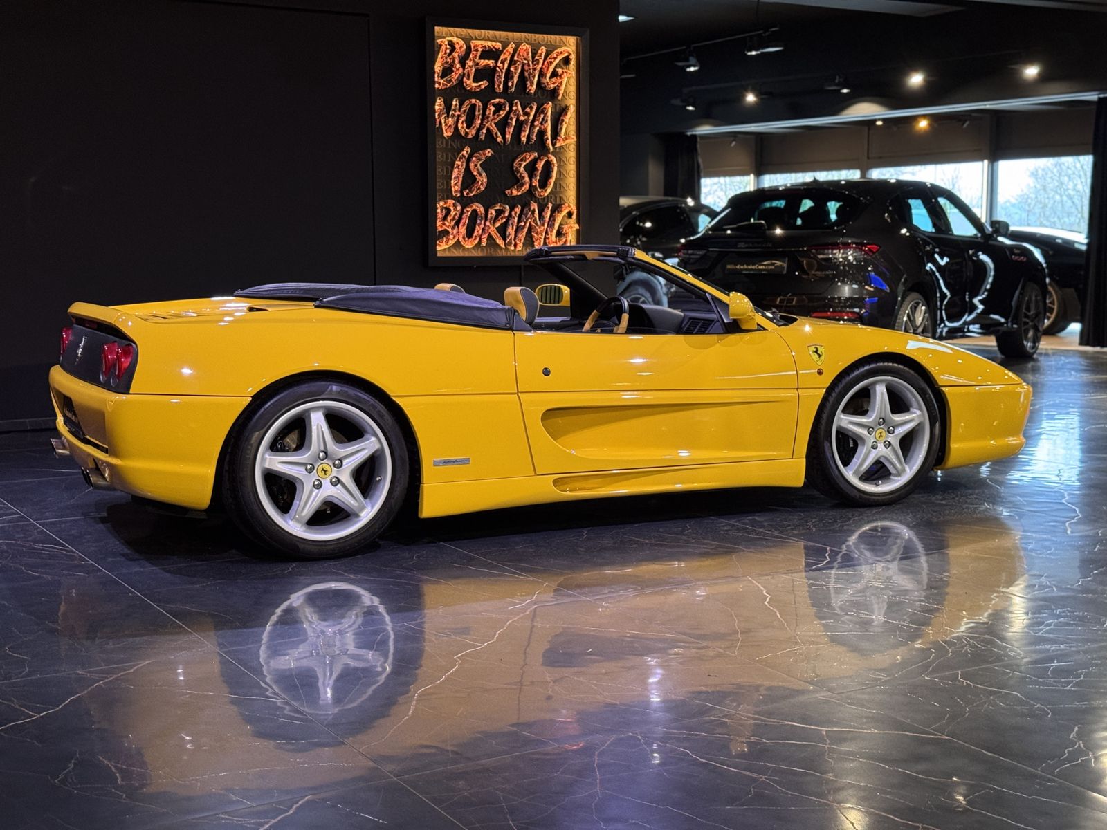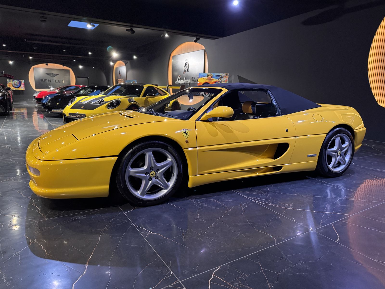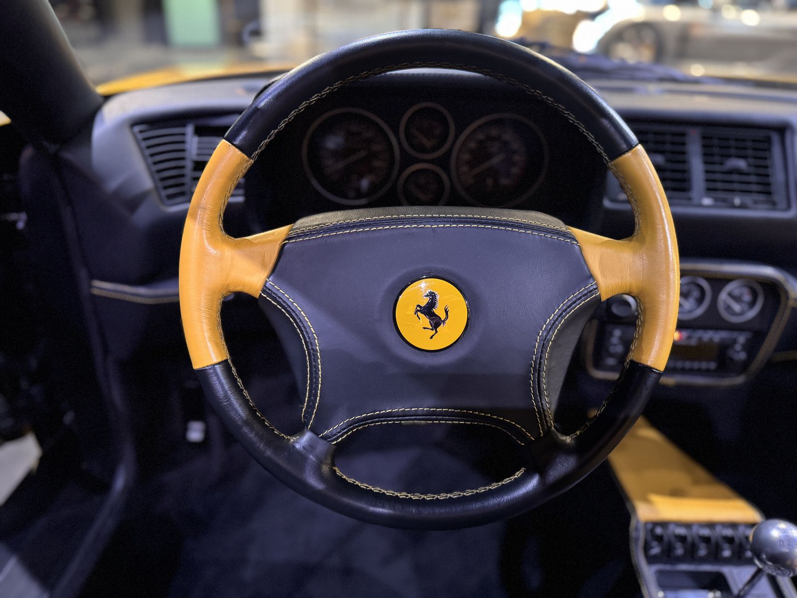 Zum Verkauf steht ein außergewöhnlich gepflegter Ferrari F355 Spider in der seltenen Farbe Giallo Modena mit Bi-Color LEder schwarz/gelb.